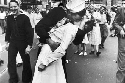 Hoje deparei-me com duas fotografias que parecem traduzir o espírito do nosso tempo — como se o século inteiro coubesse em dois instantes: um que abraça, outro que foge. A primeira imagem é a do beijo...